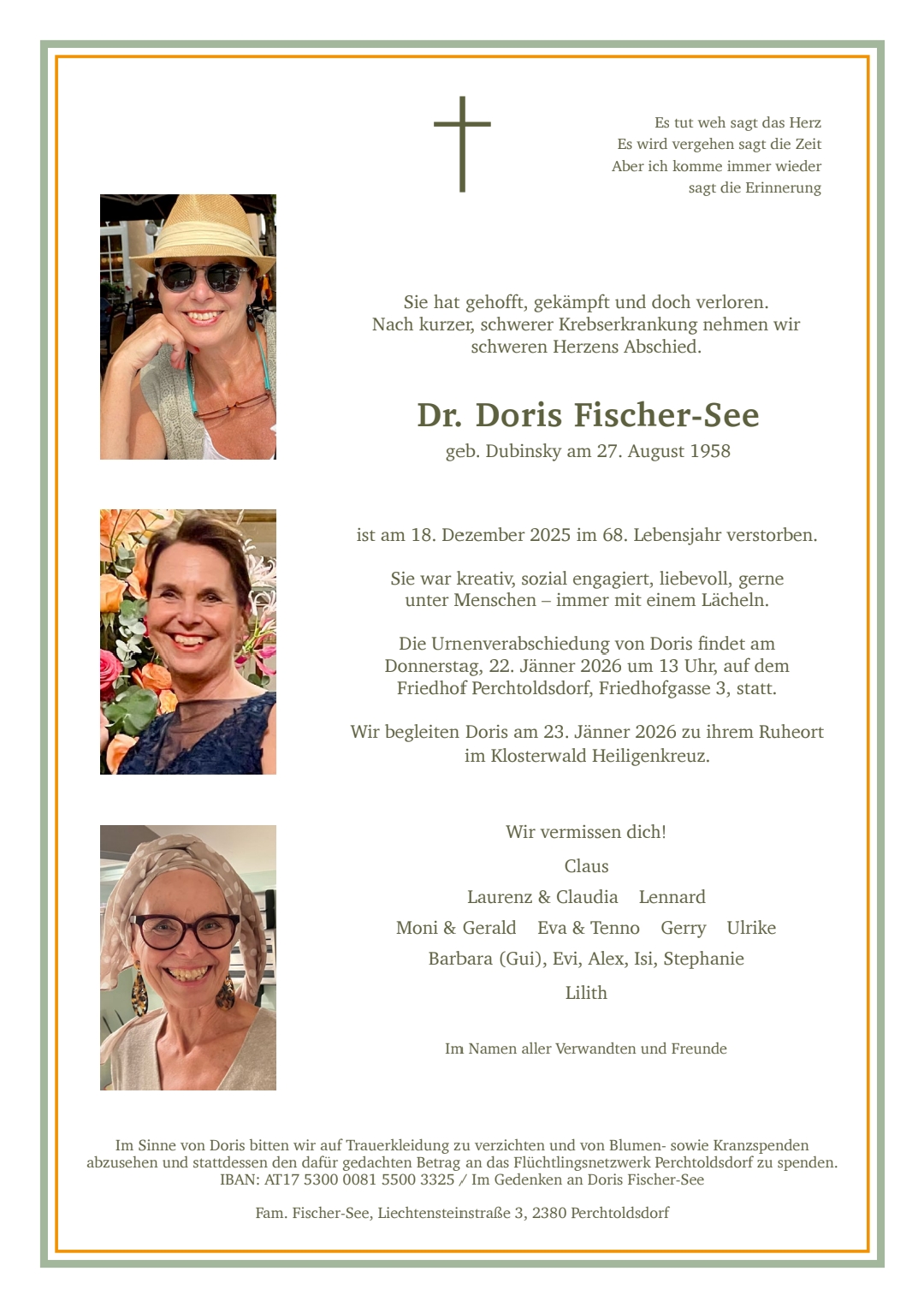 lieben Doris Abschied nehmen. Als Freundin und Kollegin